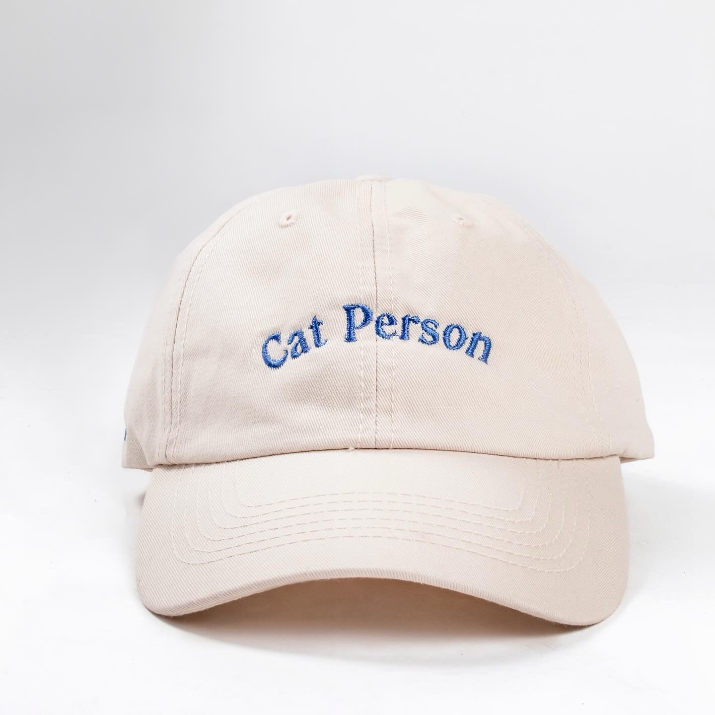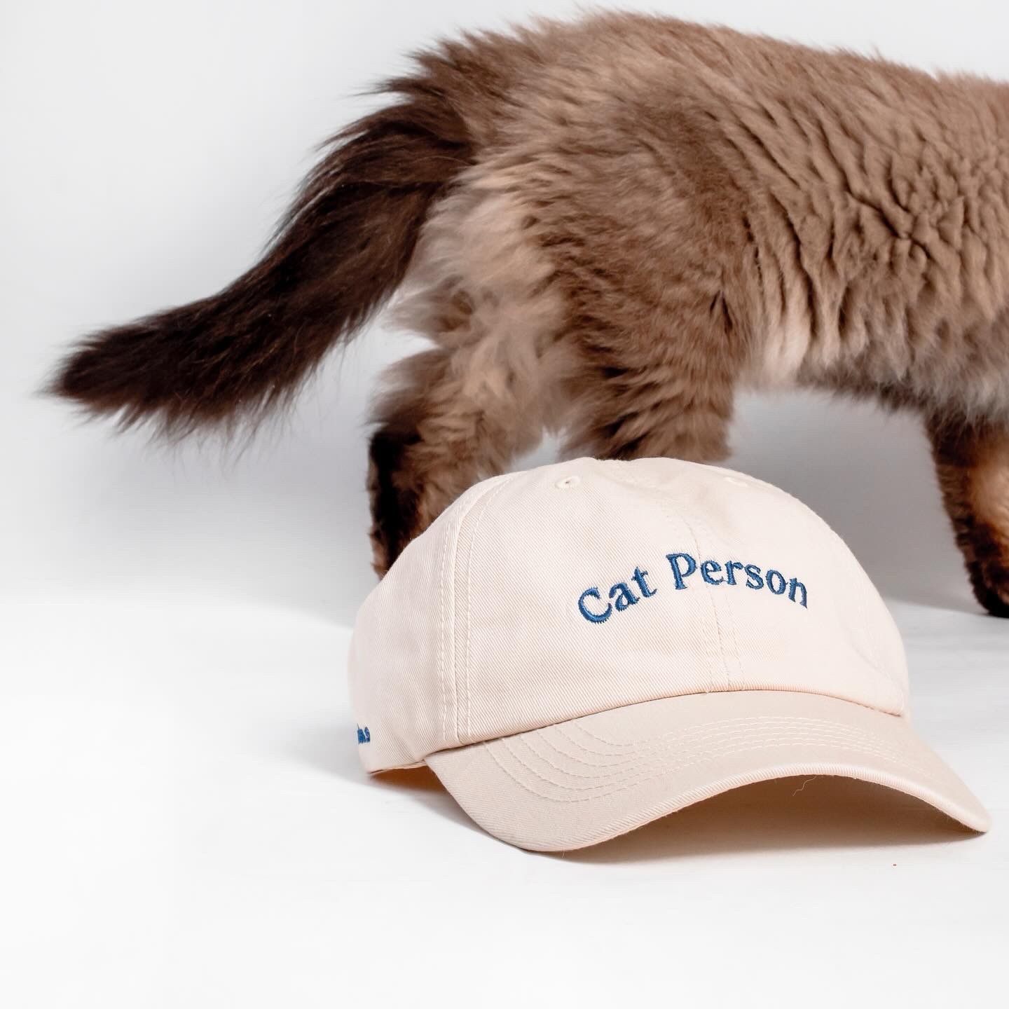 • Gorra con Logo bordado en algodón y lona color beige. Bordado «Cat Person» y «Dog Person», en la parte delantera y «@proyecto_salvavidas» en la curvatura derecha.
